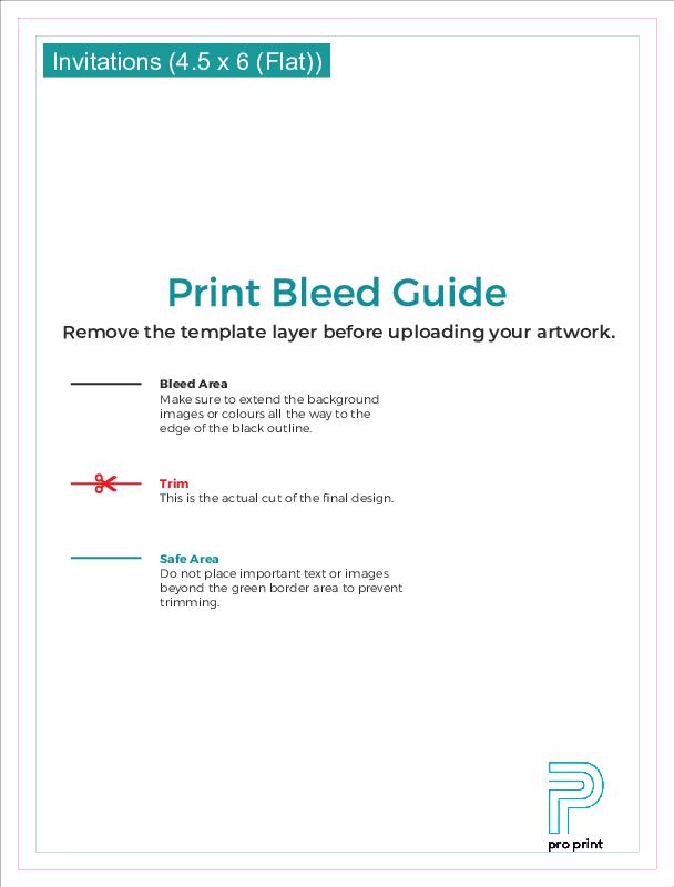 To use Pro Print's templates, start by selecting your print options and clicking “Get Templates.” Download or email the format you need. This template will show size, bleed, and fold lines.